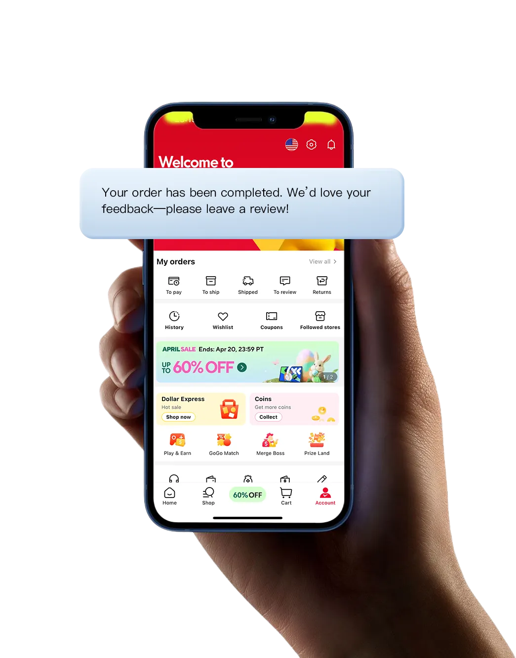 Send post-purchase notifications such as review requests, after-sales updates, and feedback collection via SMS, voice, and email to complete the customer journey and improve satisfaction.