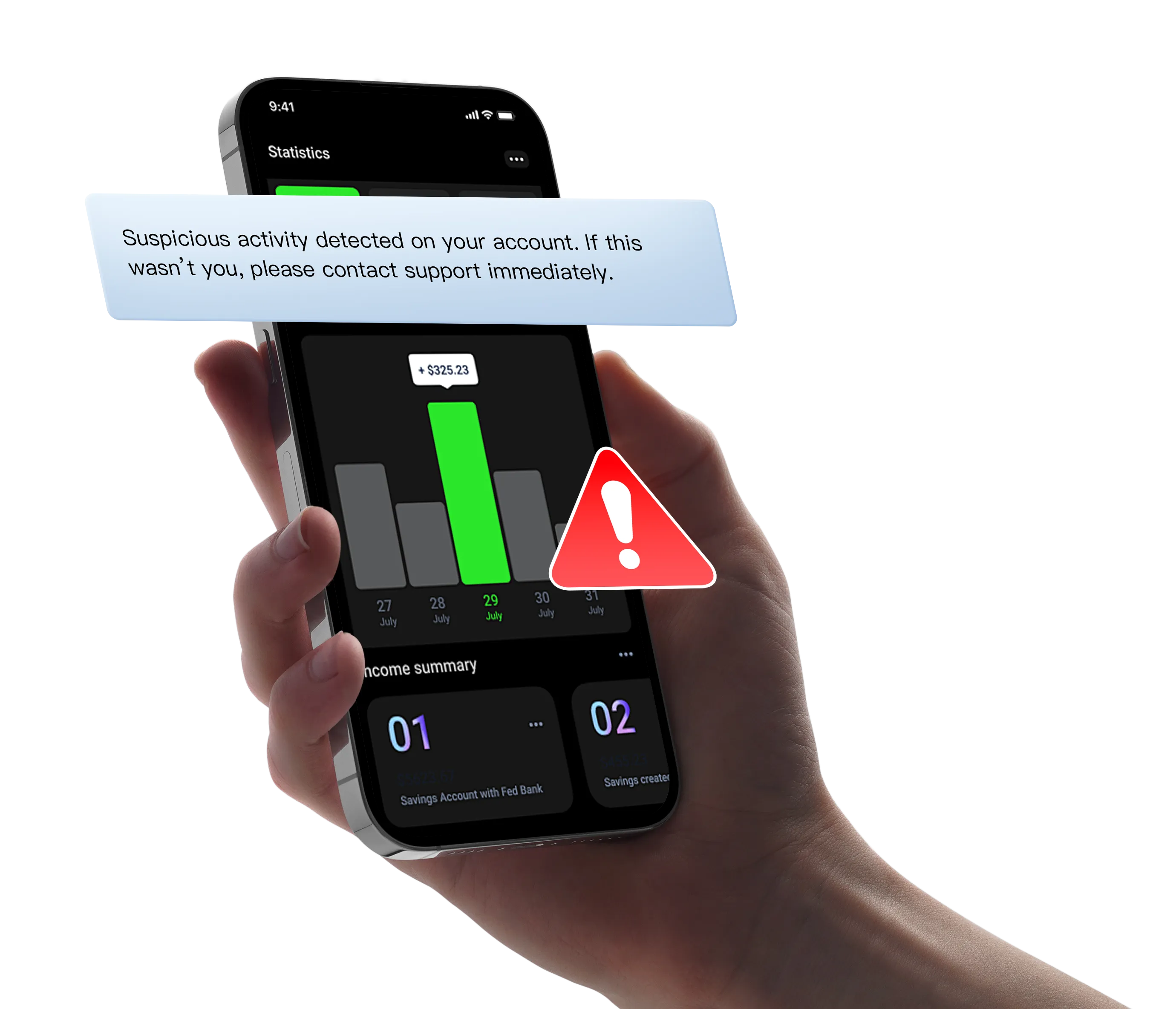 When suspicious transactions or unusual activities are detected, alerts are sent via SMS, voice, and email to ensure immediate awareness and enable users to take quick action, minimizing potential risks.