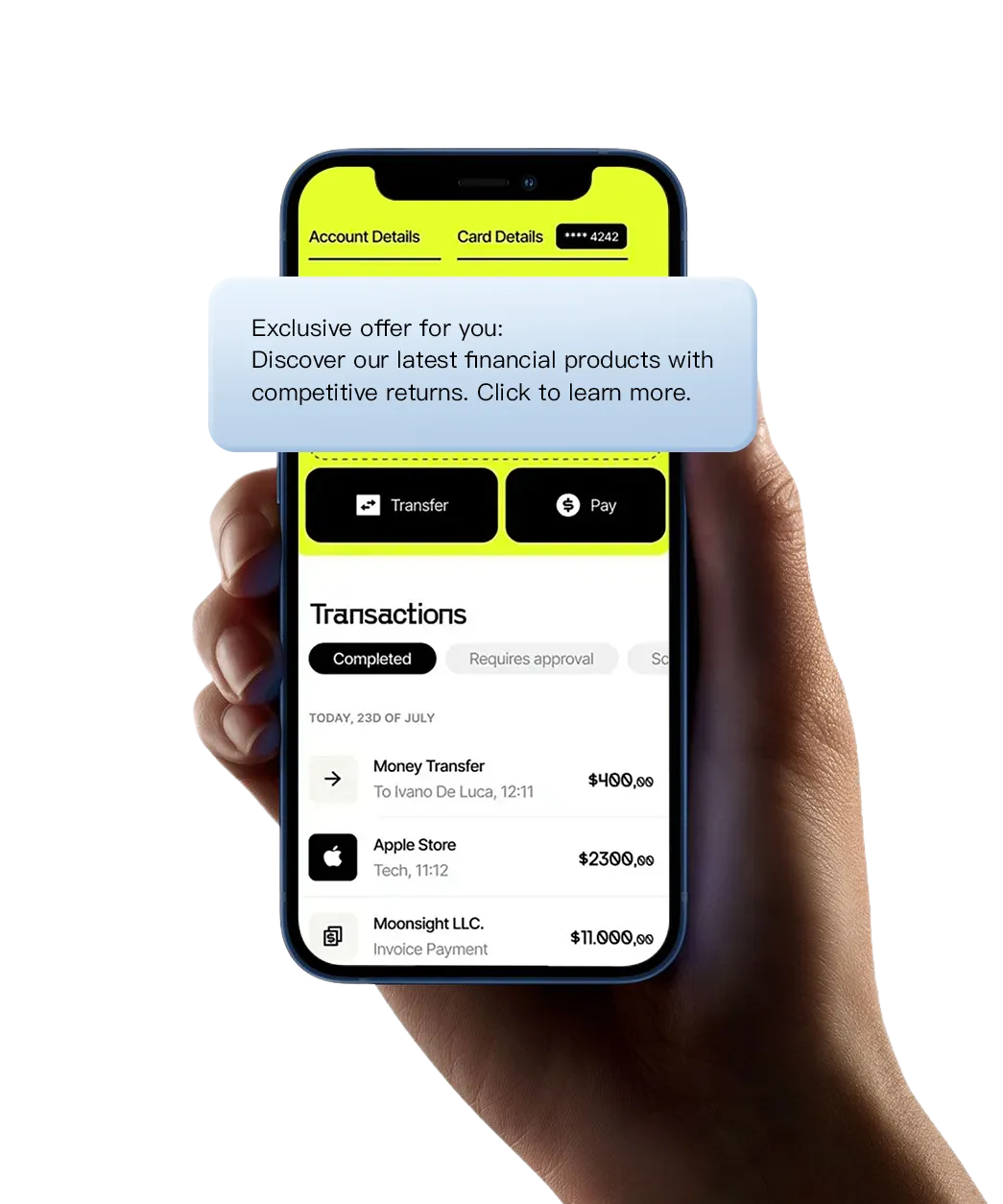 Leverage customer data and financial behavior insights to deliver personalized promotions, financial products, and exclusive services via SMS, voice, and email, driving engagement and customer value.
